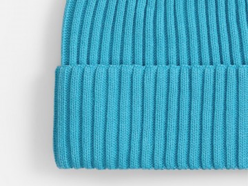 Однослойная шапка фактурной вязки с двойным отворотом.