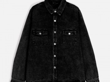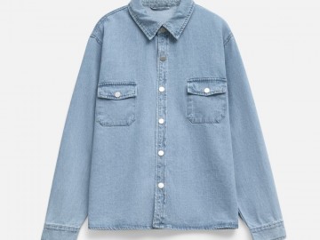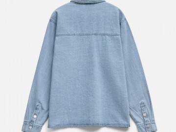 Джинсовая куртка-рубашка унисекс на кнопках прямого силуэта.