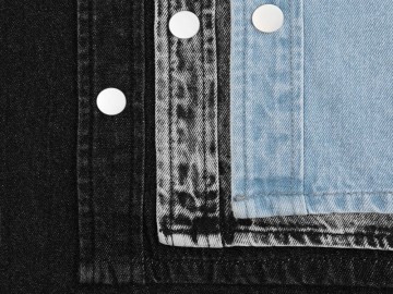 Джинсовая куртка-рубашка унисекс на кнопках прямого силуэта.