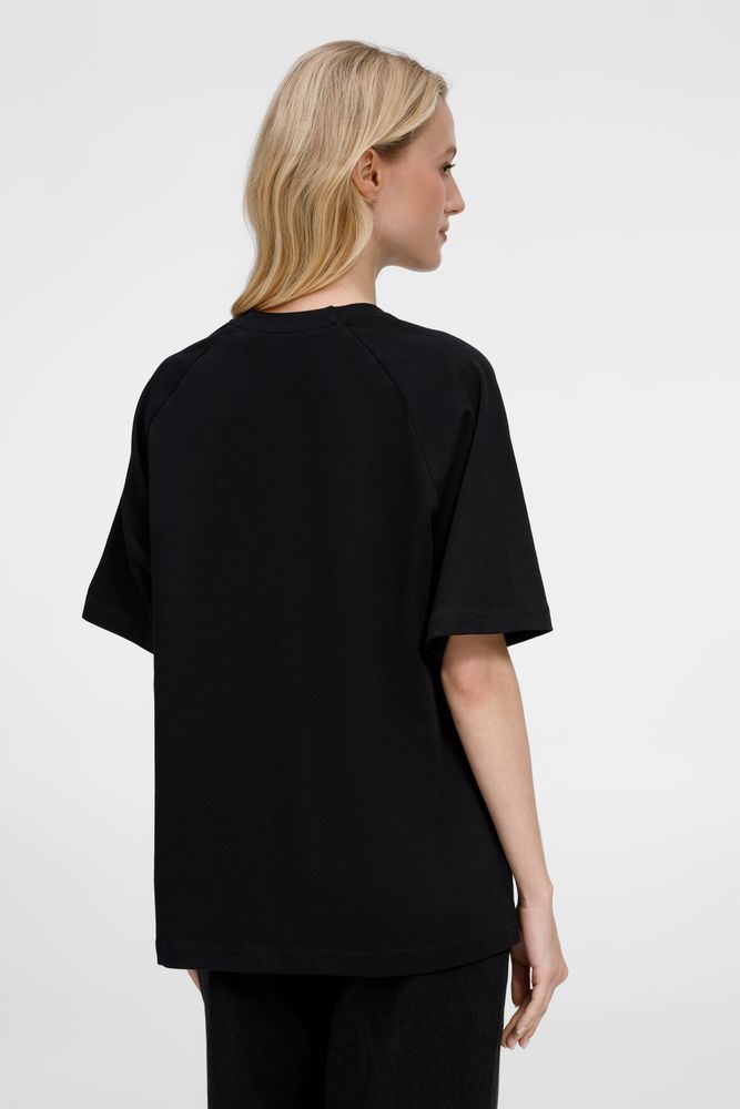 Футболка унисекс свободного кроя с круглым воротом.