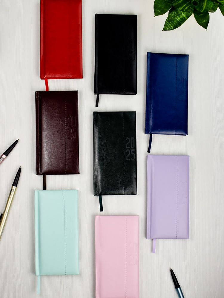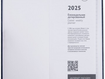 Еженедельник с твердой обложкой с поролоном из искусственной кожи, дополнен декоративной строчкой, капталом и ляссе в цвет.