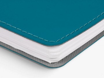 Ежедневник с гибкой обложкой, выполнен из материалов Soft Touch, цвет морской волны II и Nice touch, серый СС.