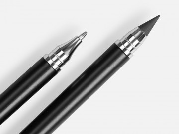 Изготовленный из сплава графита со свинцом долговечный наконечник карандаша не требует заточки, а закончившийся стержень в ручке легко заменить. Оба наконечника закрываются защитными колпачками.