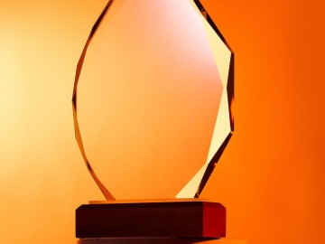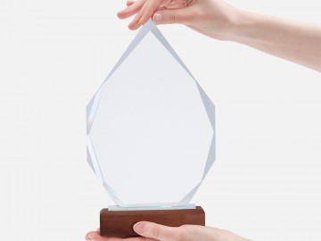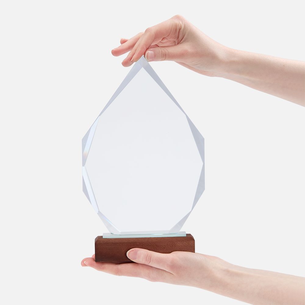 Награда изготовлена из стекла К9, в основе которого лежит оптическое боросиликатное стекло. Эту марку стекла отличает низкий процент посторонних включений, высокий показатель преломления и высокая прозрачность — идеальные качества для изготовления наград премиального уровня.