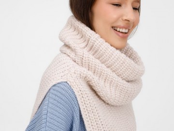 Мягкая пряжа с выразительной фактурной вязкой создает объем без лишней тяжести, даря тепло в прохладную погоду. Разрез от середины снуда расширяет возможности стилизации: его можно драпировать асимметрично или создавать оригинальные многослойные образы. Сдержанный дизайн и универсальная цветовая палитра делают его идеальным дополнением к пальто или куртке.