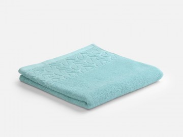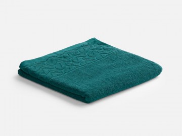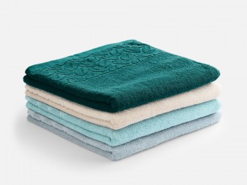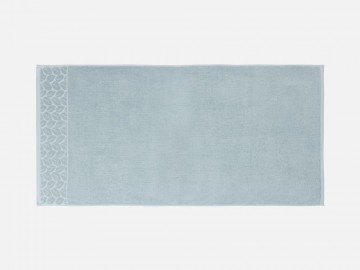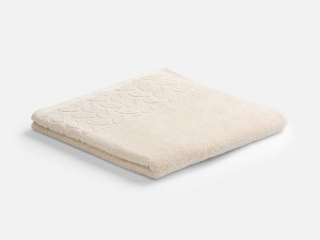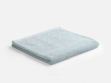 Светлые оттенки в сочетании с широким бордюром с рельефным растительным узором придают полотенцу элегантный и свежий вид.