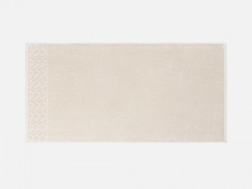 Светлые оттенки в сочетании с широким бордюром с рельефным растительным узором придают полотенцу элегантный и свежий вид.