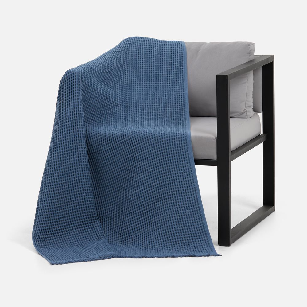 Создан из натурального хлопка с выраженной текстурой вафельного переплетения. Он легкий, дышащий и удивительно приятный на ощупь — идеальный баланс между уютом и минимализмом.