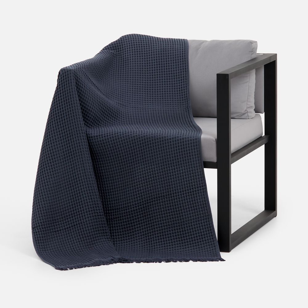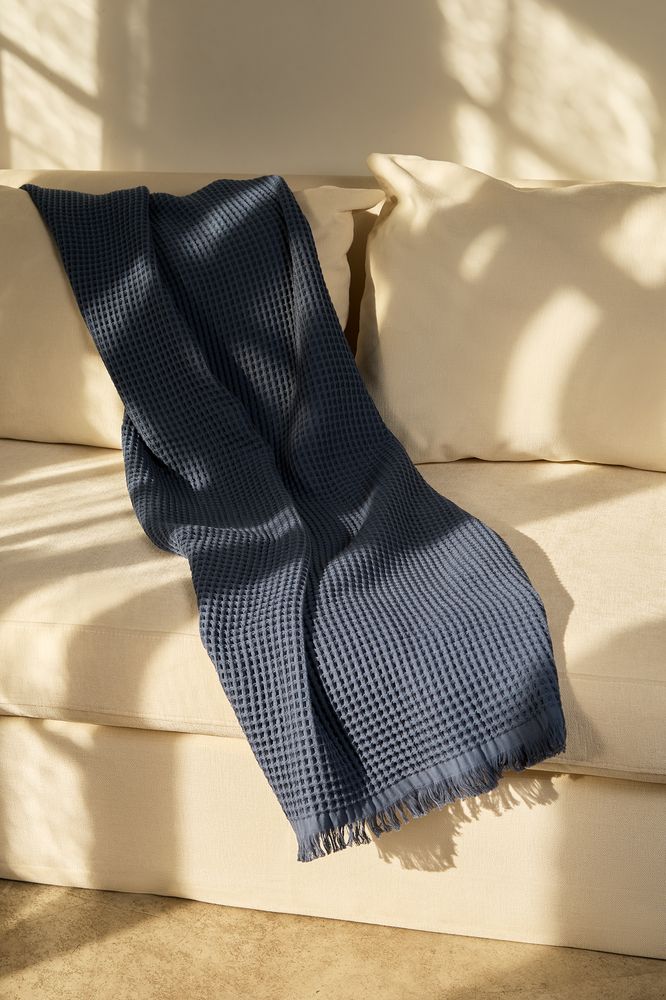 Создан из натурального хлопка с выраженной текстурой вафельного переплетения. Он легкий, дышащий и удивительно приятный на ощупь — идеальный баланс между уютом и минимализмом.