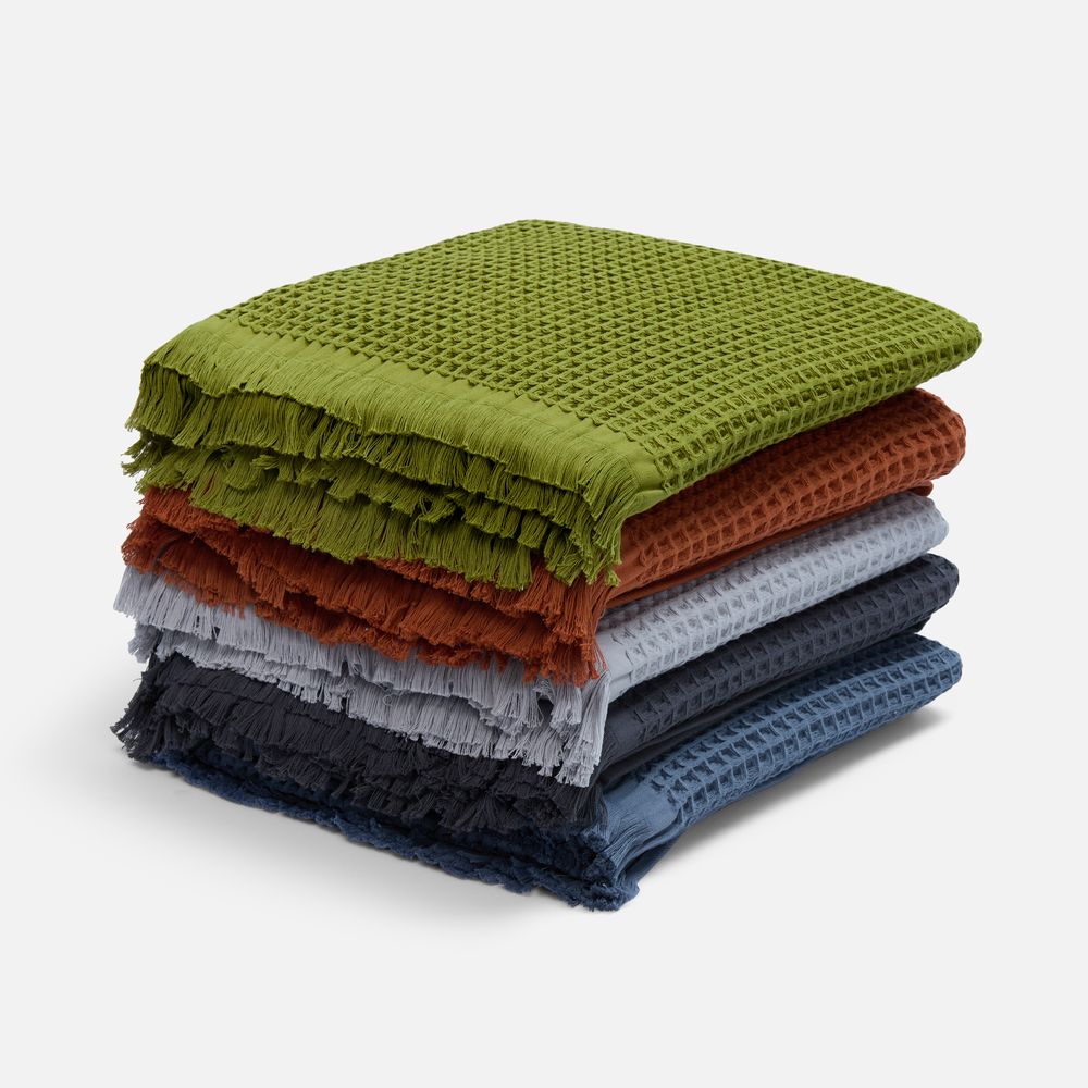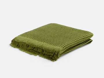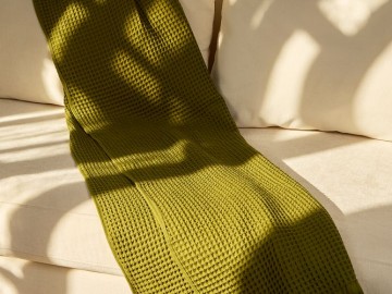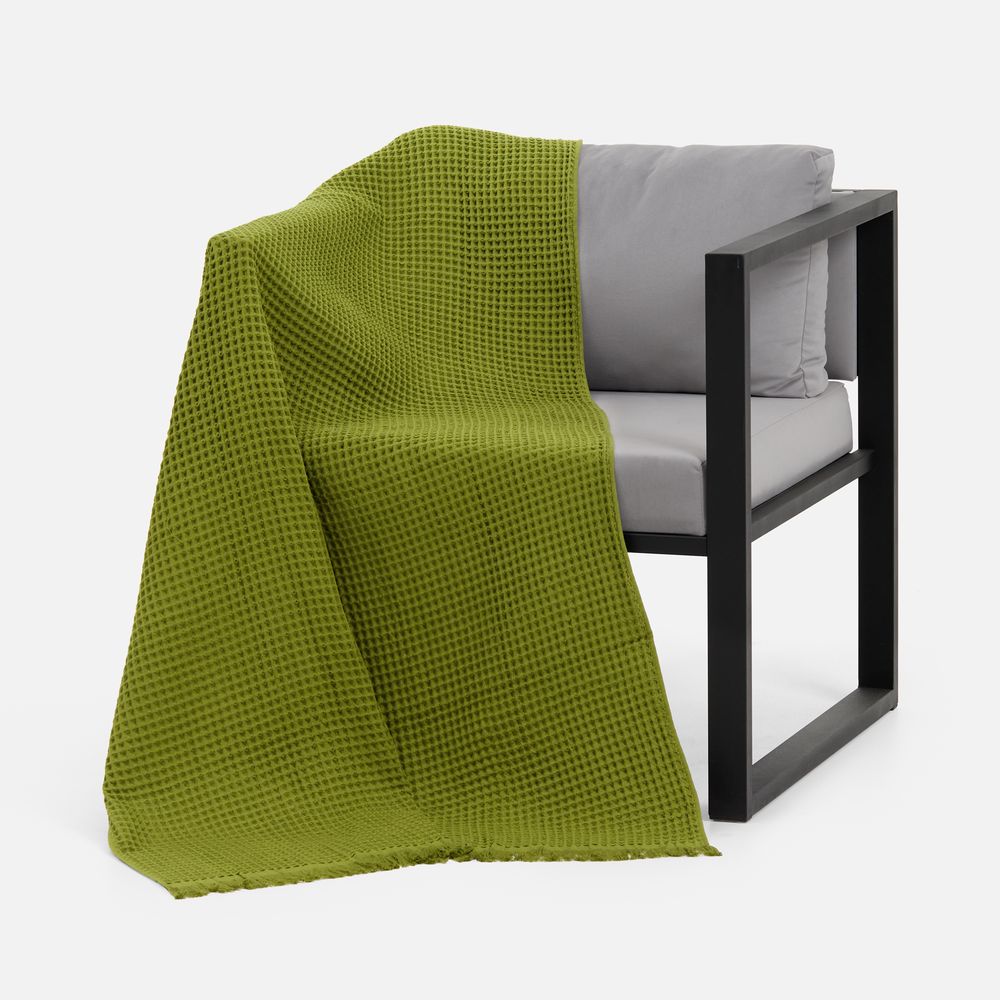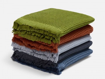 Создан из натурального хлопка с выраженной текстурой вафельного переплетения. Он легкий, дышащий и удивительно приятный на ощупь — идеальный баланс между уютом и минимализмом.