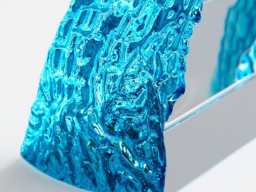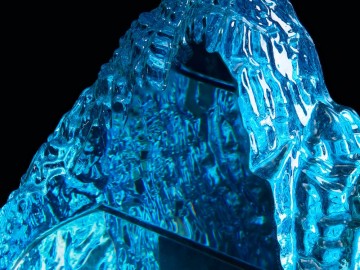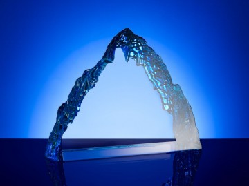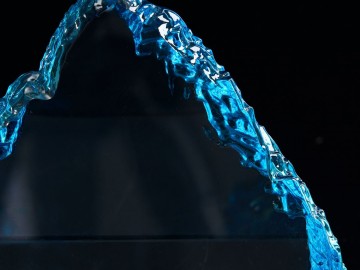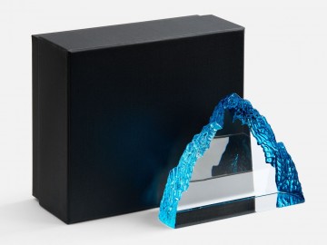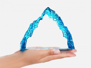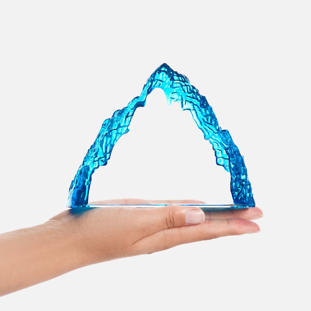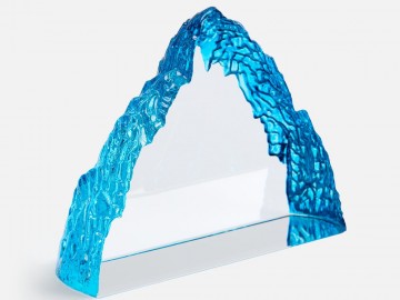 Необычная форма стелы, похожая на живописный горный хребет, символична и будет напоминать о покоренных высотах, вдохновляя на новые свершения. Эффект заснеженной вершины дополнительно усиливается благодаря голубоватому цвету.