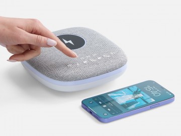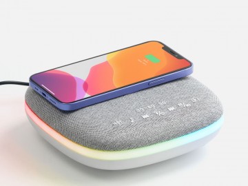 Bluetooth колонка с беспроводной зарядкой и подсветкой Terrafonic, серая