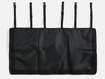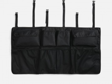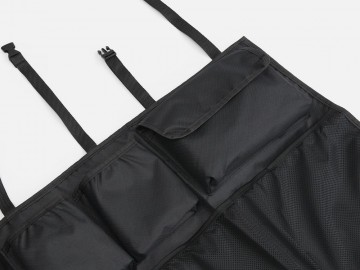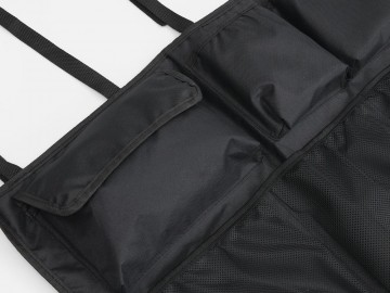 В органайзере имеются разные по форме и типу карманы: карманы-сетки, карманы с крышкой на липучке и открытые карманы. Конструкция крепится ремнями за подголовники задних сидений. Дополнительно на его задней части имеются ленты-липучки, которые обеспечивают полное прилегание к спинкам задних кресел.