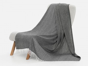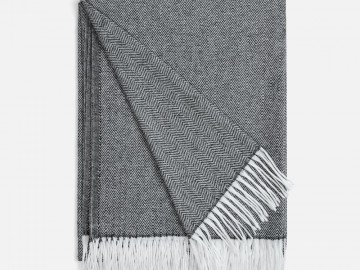 Классический рисунок «елочка» не слишком привлекает внимание, но в то же время добавляет изюминки. Смешанный состав пряжи продлевает срок службы и существенно облегчает уход за пледом.