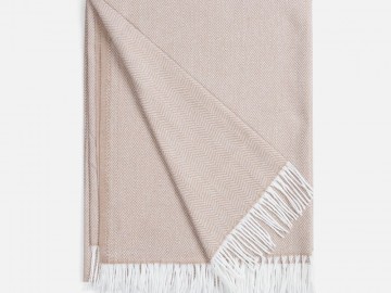 Классический рисунок «елочка» не слишком привлекает внимание, но в то же время добавляет изюминки. Смешанный состав пряжи продлевает срок службы и существенно облегчает уход за пледом.