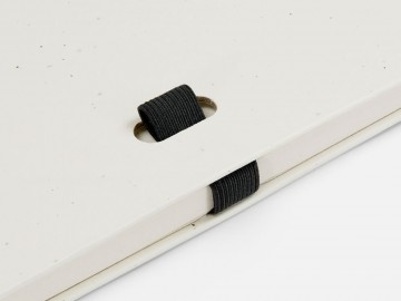 Бумага и обложка произведены из переработанных пакетов из-под молока. Обложка из картона плотностью 140 г/м² .