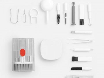 - В комплекте: большая щетка, салфетка для ухода за дисплеем, контейнер для жидкости, пластиковый пинцет, щетка с жесткой щетиной, щетка с мягкой щетиной, чистящее перо со щеткой для наушников, насадка для чистки кейса от наушников, ершик для чистки кейса от наушников, щетка с короткой щетиной, щетка с наклонной щетиной, двусторонняя насадка для чистки разъемов зарядки, двусторонняя насадка для чистки камеры, инструмент для продувки, дуговой пинцет, ключ для отсека SIM-карты, инструмент для извлечения поврежденных ключей