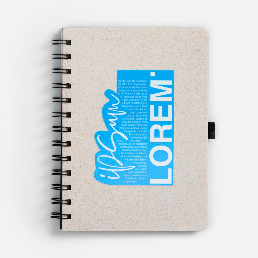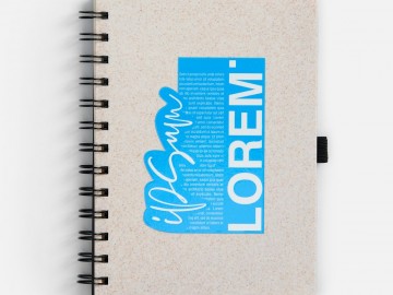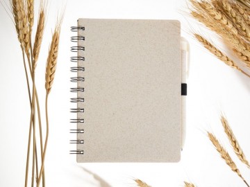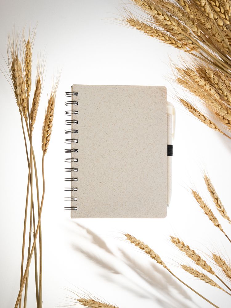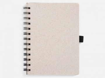 Блокнот на спирали из пшеничной соломы с резинкой для ручки.