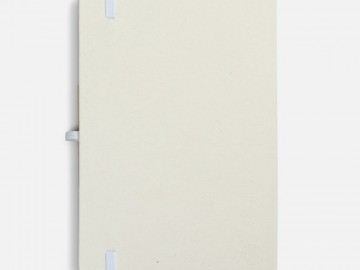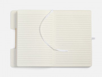 Блокнот из переработанных молочных пакетов, дополнен цветными петлей-резинкой для ручки, белым ляссе и резинкой на обложку.