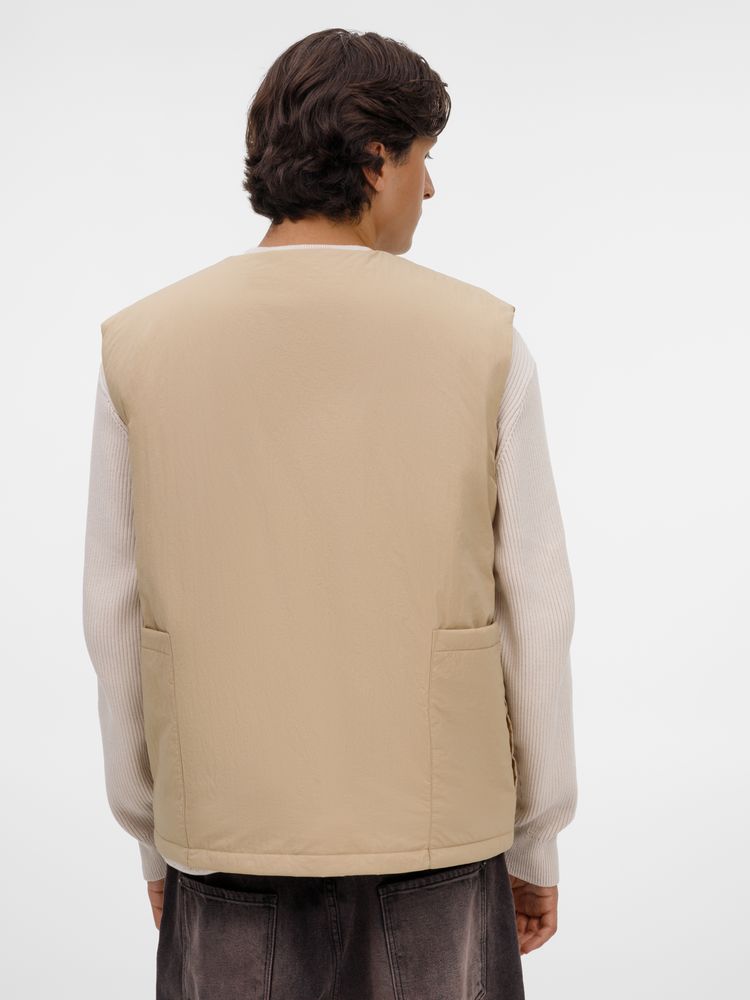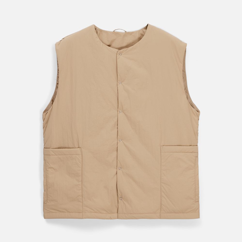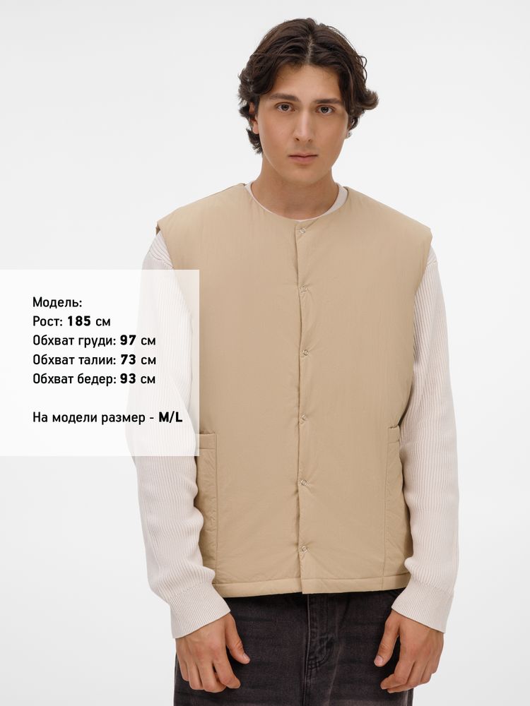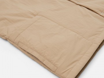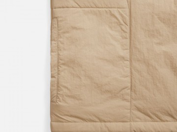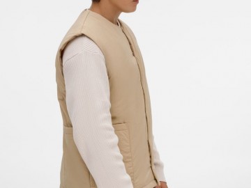 Коллекция верхней одежды, что легко согревает и обволакивает, как теплый и ласковый ветер, и в то же время ветра совсем не боится. Жилет из нейлона с текстурой мятого шелка создает приятный микроклимат, в котором воздушность сочетается с комфортной терморегуляцией.