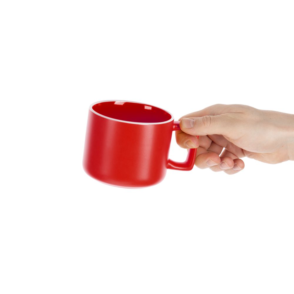 Глазурь спокойных оттенков, матовая снаружи и глянцевая внутри, графичная прямоугольная ручка — с чашкой Fusion не захочется расставаться.