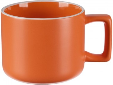 Глазурь спокойных оттенков, матовая снаружи и глянцевая внутри, графичная прямоугольная ручка — с чашкой Fusion не захочется расставаться.