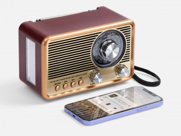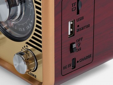 В ретрокорпусе скрываются вполне современные функции: возможность воспроизведения музыки по Bluetooth и с карт памяти различного формата.