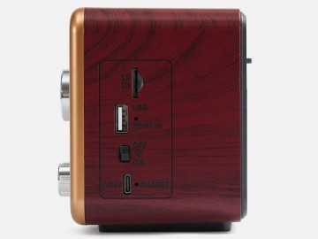 Корпус радиоприемника выполнен из качественного пластика с имитацией натурального дерева.