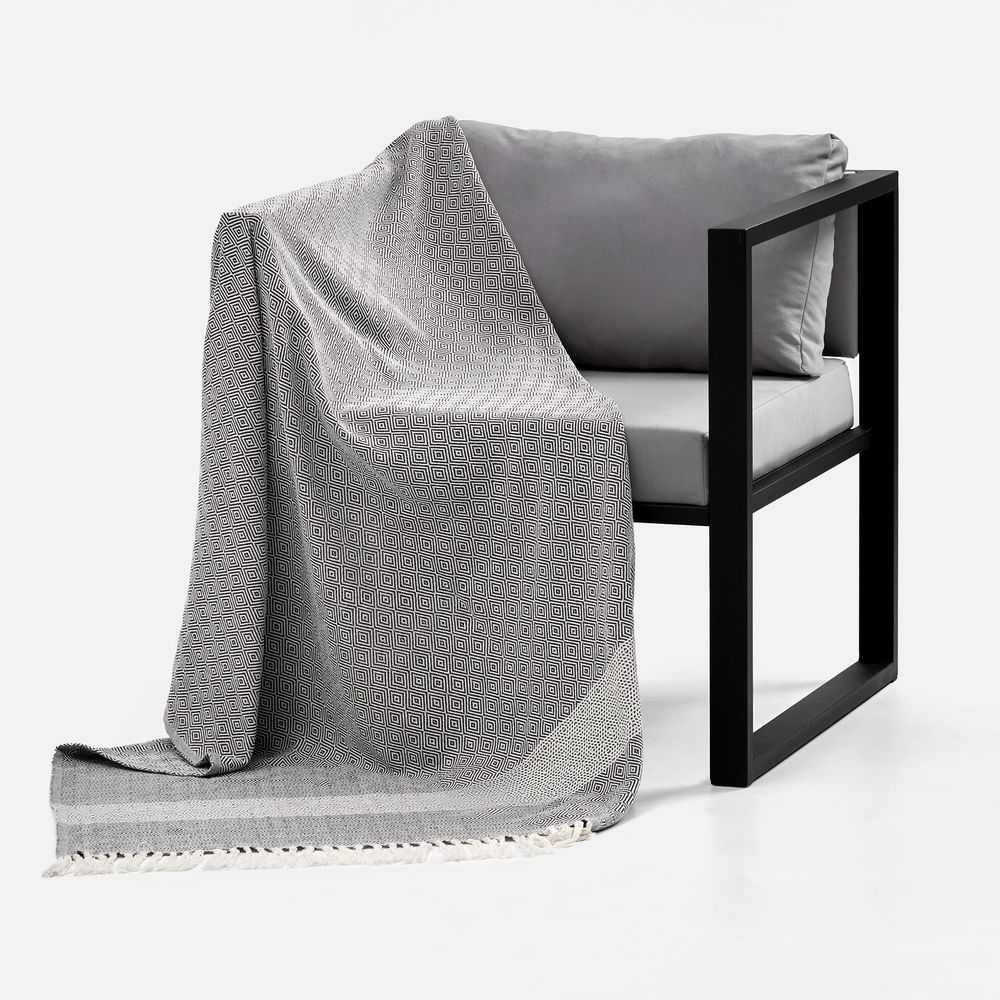 Смесовый состав пледа — 80% хлопка и 20% полиэстера — объединяет лучшее из мира натуральных и синтетических материалов. Хлопок дает натуральную мягкость и дышащую текстуру, а полиэстер добавляет прочности, помогает ткани не мяться, быстрее сохнуть и долго сохранять форму.