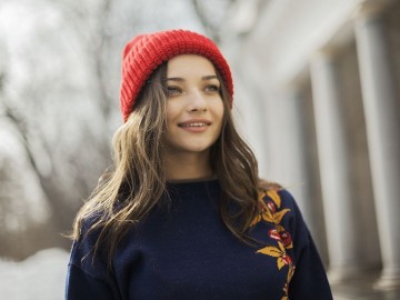 Объемная шапка из толстой пряжи.