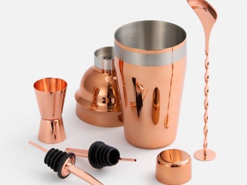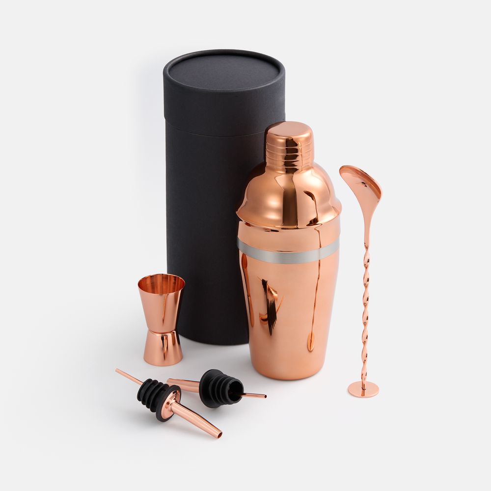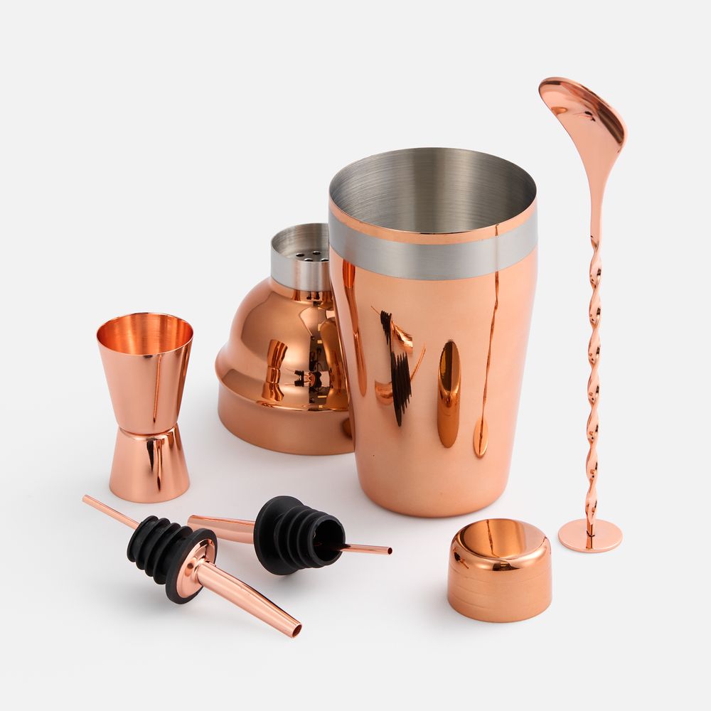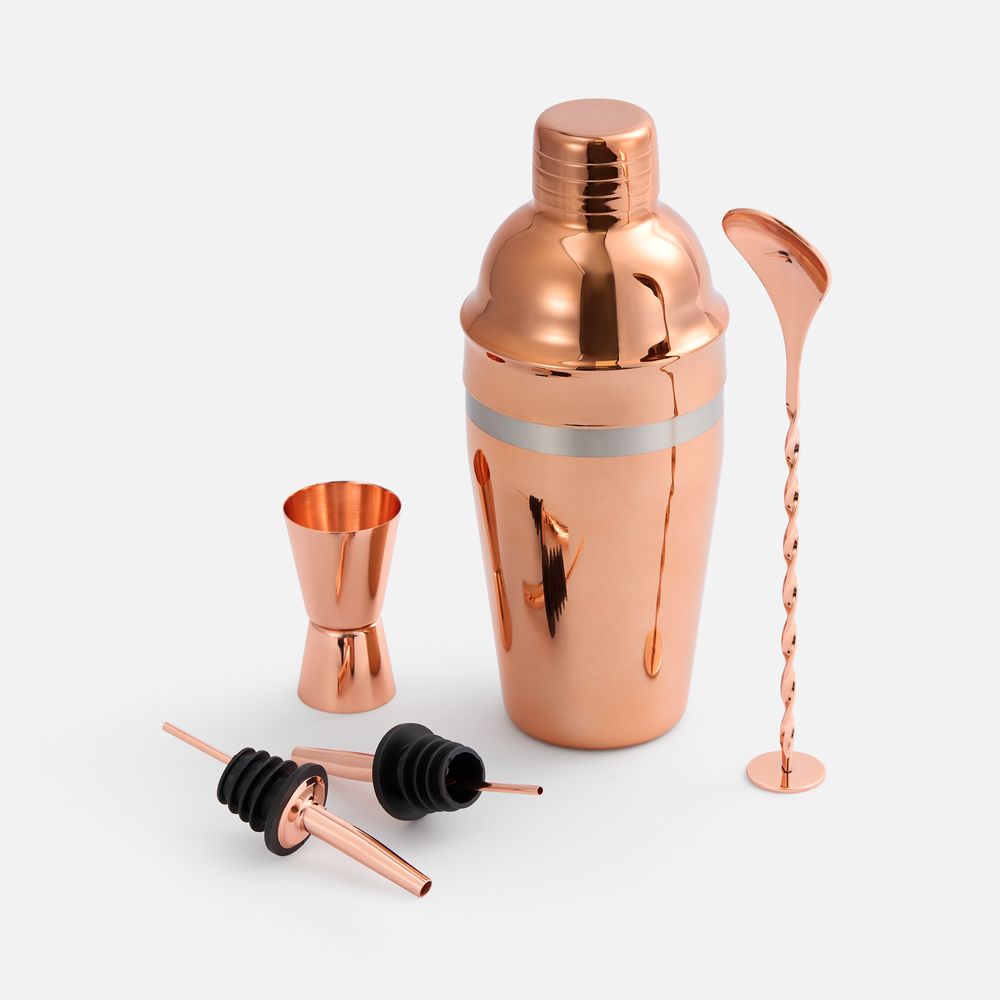 Набор для приготовления коктейлей Pourpour, медный с серебристой линией