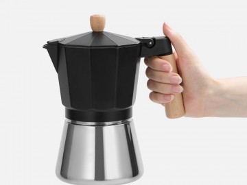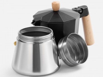 Верхняя часть выполнена из окрашенного алюминия, а нижняя — из нержавеющей стали с зеркальной полировкой, что обеспечивает долговечность и стильный внешний вид. Удобная деревянная ручка не нагревается —комфорт и безопасность при использовании гарантированы. Эта кофеварка позволит быстро и легко приготовить классический эспрессо, чтобы наслаждаться свежим крепким кофе снова и снова.
