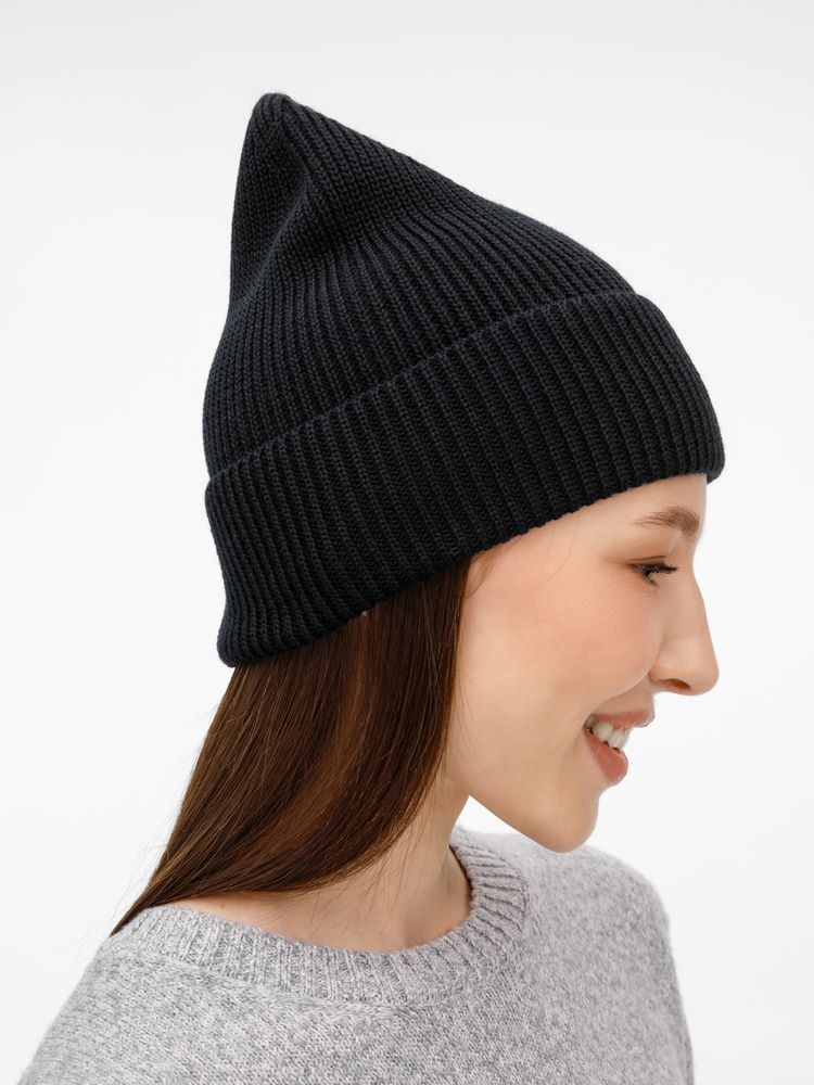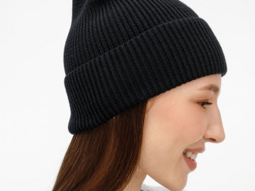 Однослойная шапка фактурной вязки с отворотом.