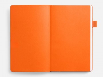Гибкая обложка, материал обложки — Soft Touch, белый BB и Latte, оранжевый ОО; материал петли для ручки — Nice Touch, оранжевый ОО. Срез обложки окрашен в оранжевый цвет.