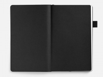 Гибкая обложка, материал обложки — Soft Touch, белый BB и Latte, черный АА; материал петли для ручки — Nice Touch, черный АА. Срез обложки окрашен в черный цвет.