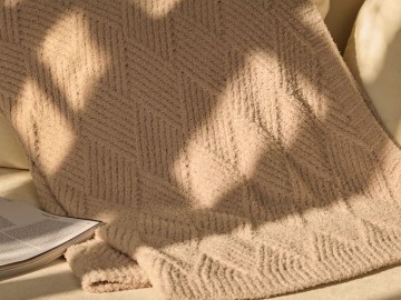 Изделие завораживает с первого взгляда: рельефный узор дарит пледу выразительность и премиальный вид. Плотная, увесистая структура материала мягко обволакивает и приятной тяжестью ощущается на теле.