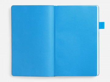 Гибкая обложка, материал обложки — Soft Touch, белый BB и Latte, голубойJJ; материал петли для ручки — Nice Touch, голубойJJ. Срез обложки окрашен в голубой цвет.