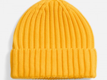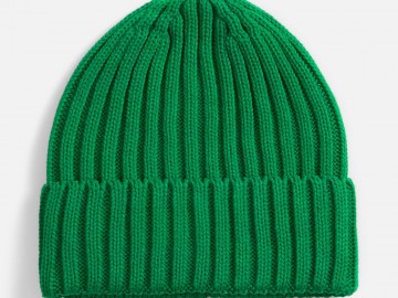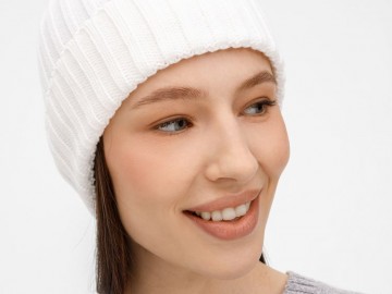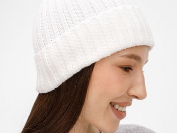 Однослойная шапка рельефной вязки с отворотом.