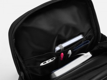 Специальное отделение на молнии с мягкими стенками надежно фиксирует ноутбук, защищая его от ударов и повреждений во время переноски. Основное отделение оснащено удобной панелью‑органайзером, позволяющей структурированно разместить документы и другие необходимые предметы.