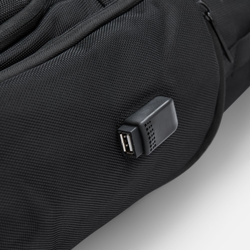 Для вещей, которые должны быть всегда под рукой, специально предусмотрен накладной карман с фиксацией по бокам. А благодаря внешнему USB-порту удобно заряжать смартфоны, планшеты и другие устройства прямо на ходу.