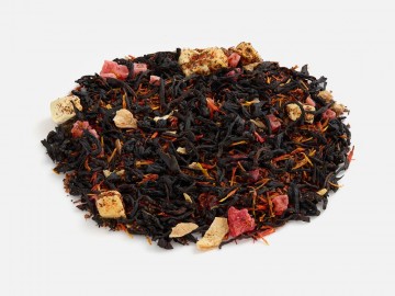 - Чай черный «Кенийский королевский» Состав: чай черный кенийский листовой, цедра лимона, слайсы апельсина, манго сублимированный кусочки, кусочки ананаса, ройбуш, сафлор, ароматизатор «кокос и ананас»