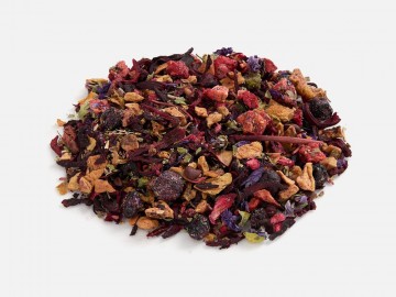 - Чай на основе каркаде и ягод «Ягодная поляна» Состав: каркаде, кусочки яблок, ягоды брусники сублимированные, ягоды черники сублимированные, кусочки малины сублимированные, кусочки клубники сублимированные, цветы мальвы, лист ежевики, ароматизатор черники и малины.