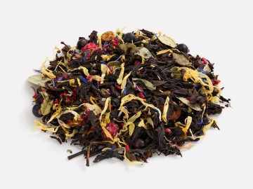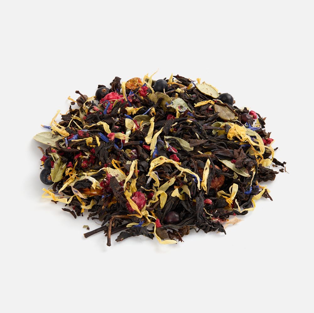 - Чай черный «Сила Тайги» Состав: чай черный индийский листовой, ягоды брусники сублимированные, ягоды облепихи сублимированные, кусочки малины сублимированные, плоды можжевельника, мелисса, лепестки календулы, лепестки василька, листья брусники, боярышник, аромат лесных ягод