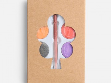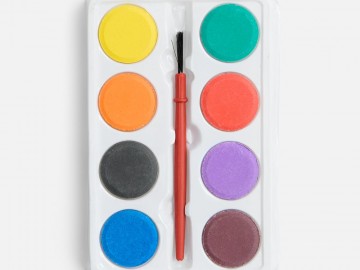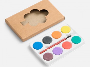 Набор из 8 акварельных красок и кисточки в коробке из крафт-бумаги.