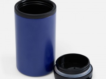 Двухслойная конструкция из пищевого пластика внутри и нержавеющей стали снаружи. Герметичная завинчивающаяся крышка с откидным клапаном для питья.