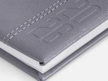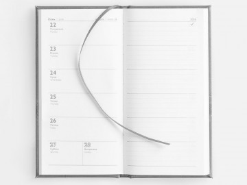 Еженедельник с твердой обложкой с поролоном из искусственной кожи, дополнен декоративной строчкой, капталом и ляссе в цвет.
