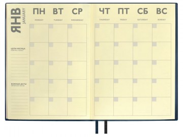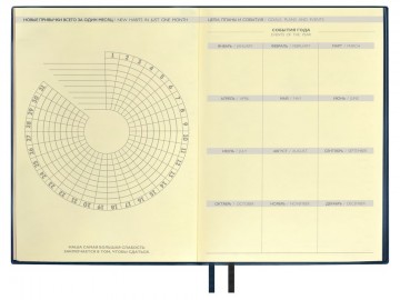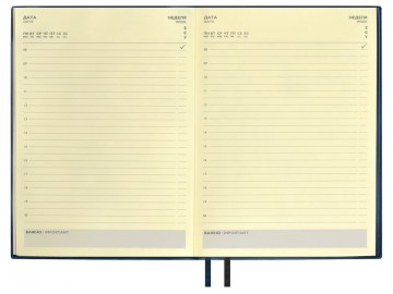 Ежедневник с гибкой обложкой и закладкой из искусственной кожи, дополнен капталом и двойным ляссе.