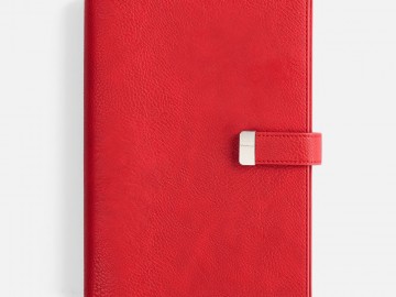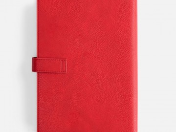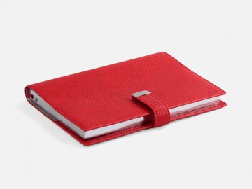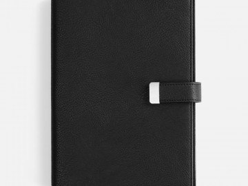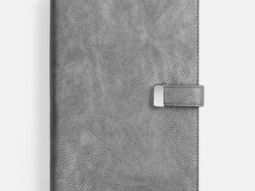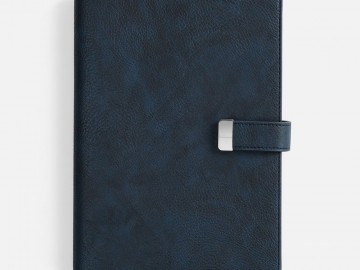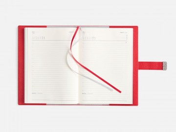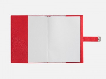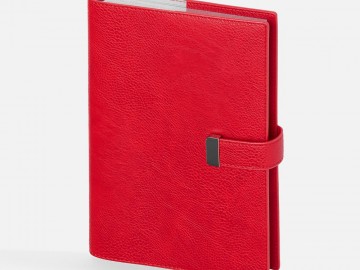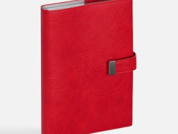 Ежедневник в мягком переплете со съемной обложкой, дополнен застежкой-хлястиком с металлическим шильдом на кнопке, двойным ляссе и капталом.