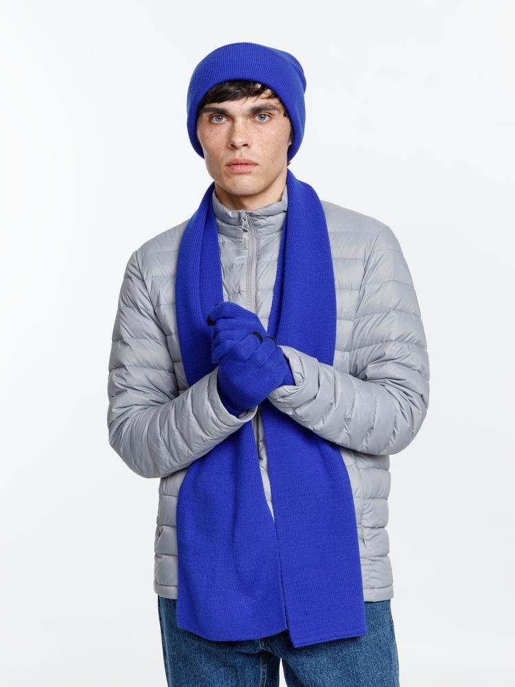 В комплект входят двухслойная шапка с регулируемым отворотом и легкий однослойный шарф из мягкой акриловой пряжи, сохраняющие тепло и защищающие от ветра, а также эргономичные перчатки со специальными токопроводящими волокнами на кончиках пальцев, в которых можно свободно пользоваться смартфоном даже в холодную погоду. Универсальная цветовая гамма и лаконичный дизайн делают набор органичным дополнением к любой верхней одежде.