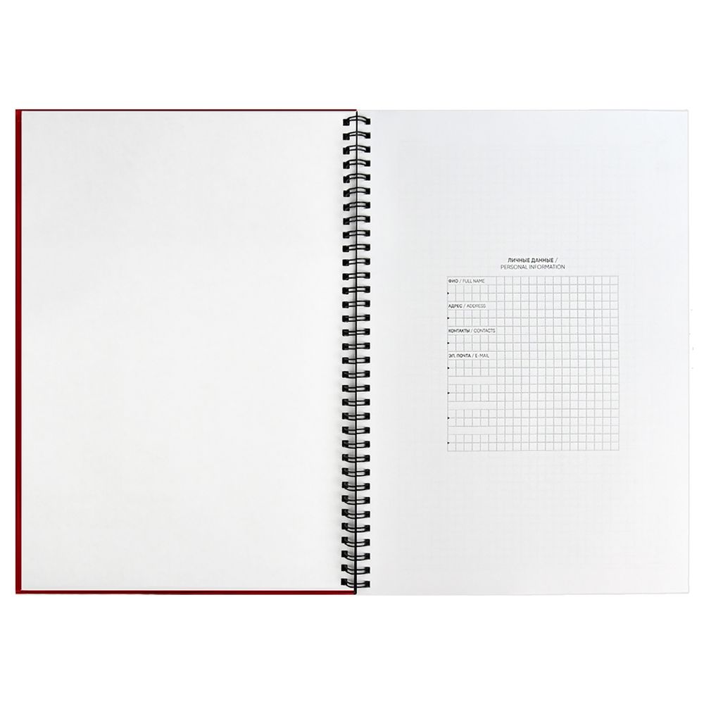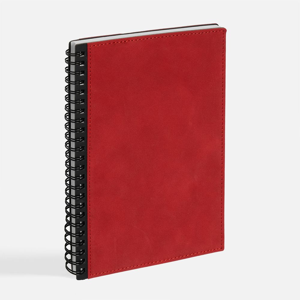 Ежедневник с интегральным переплетом, гибкой обложкой и обстрочкой по периметру на открытой пружине.